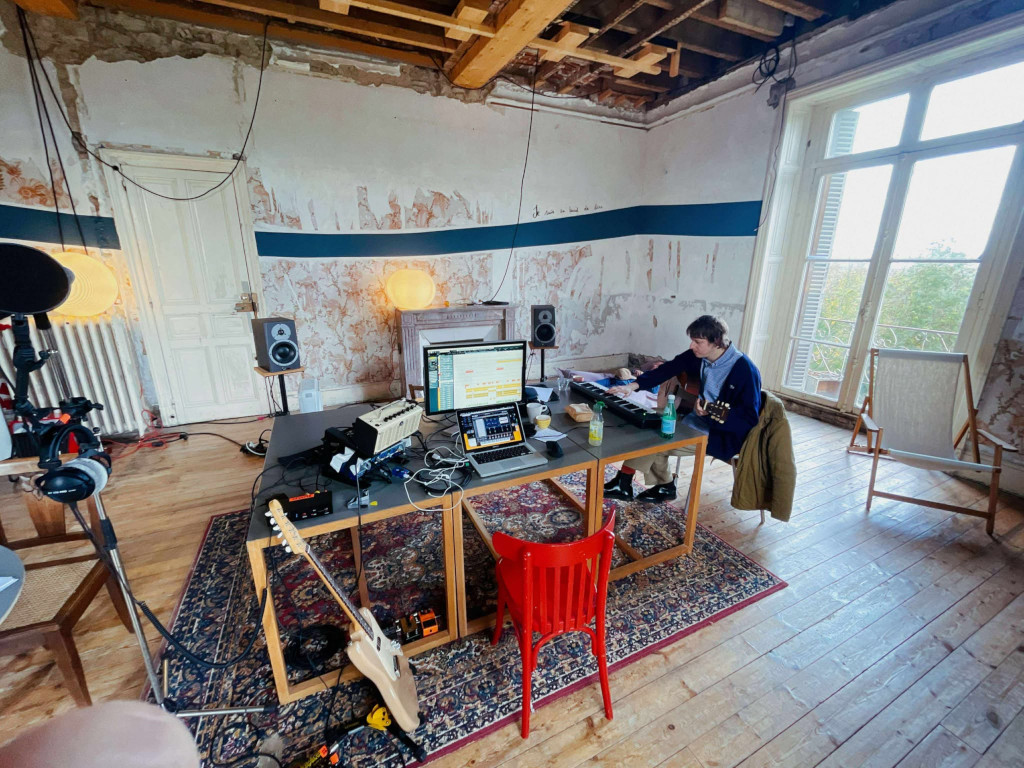 Le groupe briochin Dewaere prépare son 3ème album studio et dans cette étape de finalisation, les musiciens ont investi une pièce de la villa transformée en studio : prises de son instruments et voix, production additionnelle, mixage et arrangements sont au programme des différentes sessions de travail.