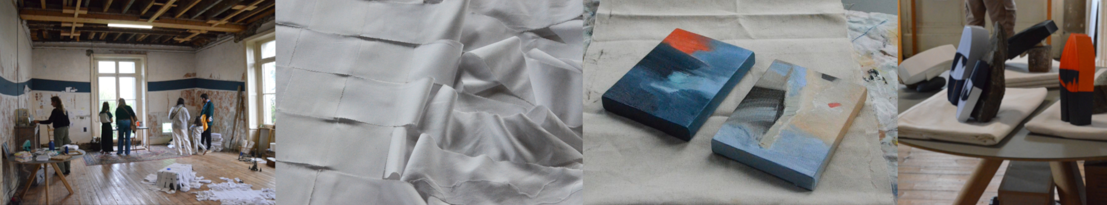 Après plusieurs semaines de digestion de ces témoignages, je m’installe à la Villa Rohannec’h afin de traduire plastiquement l’immatérialité de leurs corps en action :  la dextérité d’un geste, la forme d’un outil, une respiration retenue seront autant de motifs qui deviendront la source d’une production picturale et sculpturale."